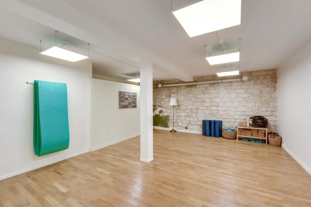 Le studio est équipé d’une douche, d’un vestiaire et fait 35 m², il peut accueillir 9 tapis maximum. Sans oublier que nous avons ici aussi tout à disposition : tapis, sangles et briques.